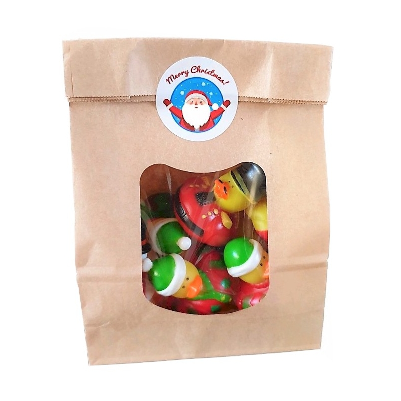 Keine Doggy Bag, sondern ein DUCKYbag! Schönes weihnachtsgeschenk diese weihnachtsgummienten in einer DUCKYbag geschenktüte. Gesamthöhe der Tasche 23 cm. Tiefe 7 cm, Breite 15 cm. Ein gefüllter Sack ist ca. 19,5 cm hoch. Der Inhalt kann ein wenig abweichen, aber alle 12 Mini-Enten stammen aus der Kategorie chrismas.