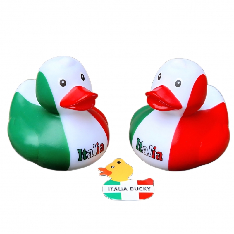 Hol dir ein Stück Urlaubsgefühl nach Hause mit dieser fröhlichen Badeente in den Farben von Italien! In Rot, Weiß und Grün gestaltet, versprüht sie echtes Dolce-Vita-Feeling und ist ein echter Hingucker. Perfekt für alle, die Italien lieben – ob Pizza, Pasta oder Sonne am Meer.