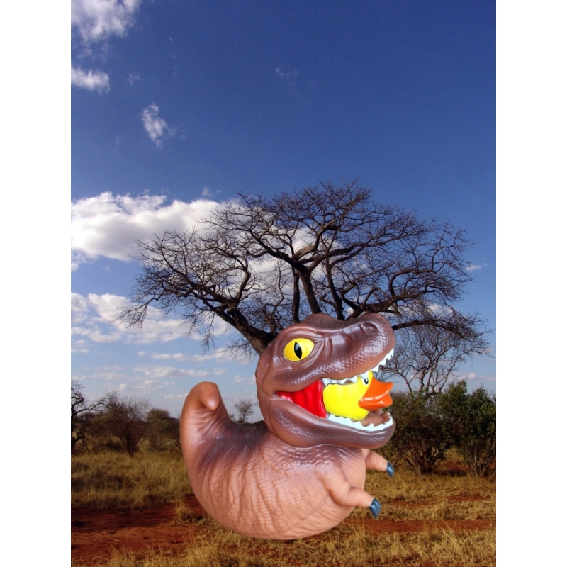 This fierce T-Rex rubber duck holding a classic yellow duck in its mouth is a true eye-catcher! A playful and humorous design that’s perfect for dinosaur lovers. The rubber duck is approximately 9 centimeters tall.
