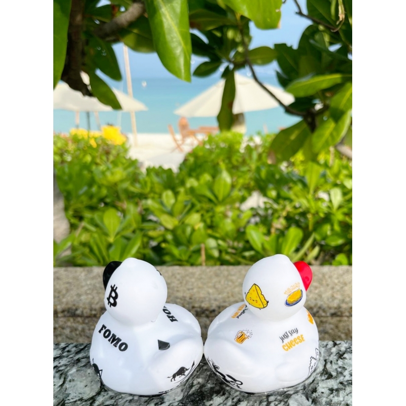 Fantastic gift for the Crypto enthusiast! Of course there are a number of crypto toppers on this rubber duck. Such as Bitcoin, Shiba, Tether & Ethereum. But also a few real Crypto statements: