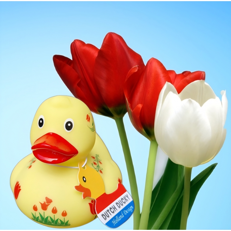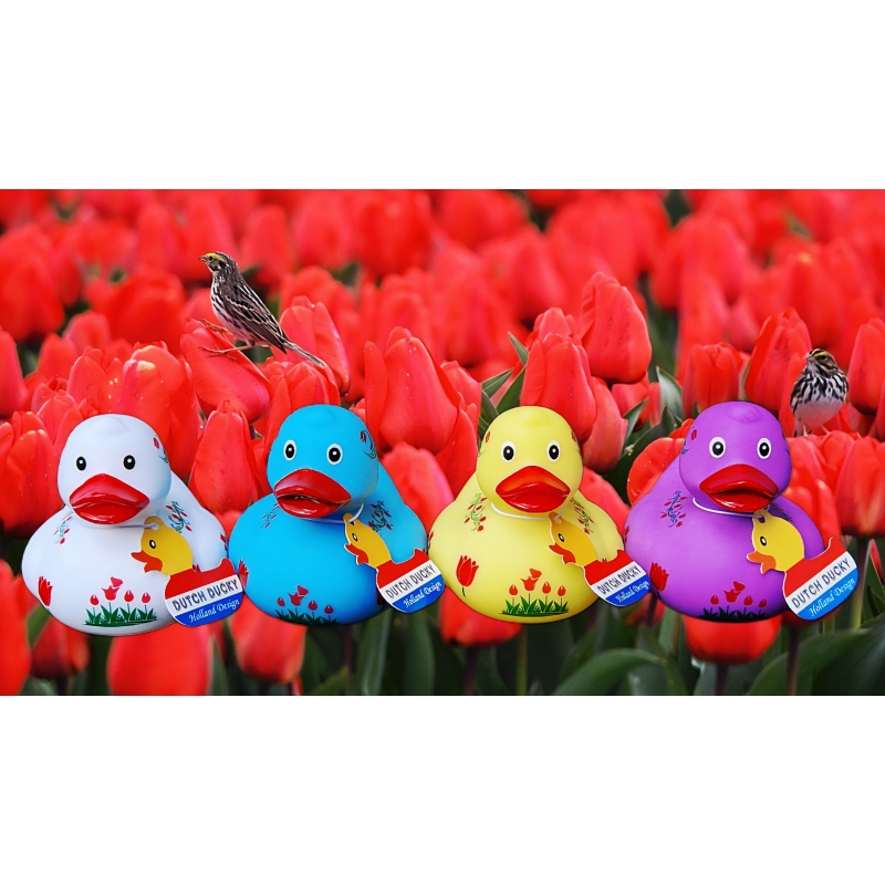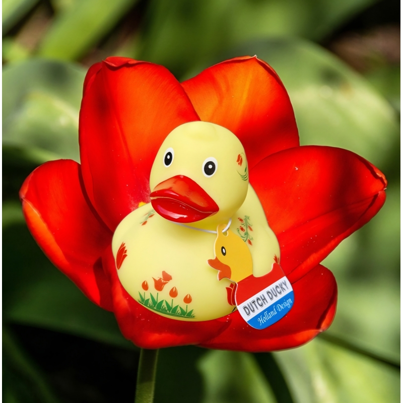Typical dutch flower duck, this cute tulip duck. The tulip rubber duck is 8 cm high.
