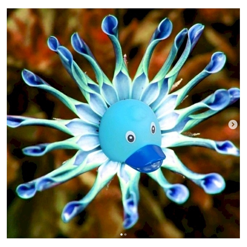 This baby blue duck is 8 cm high.
