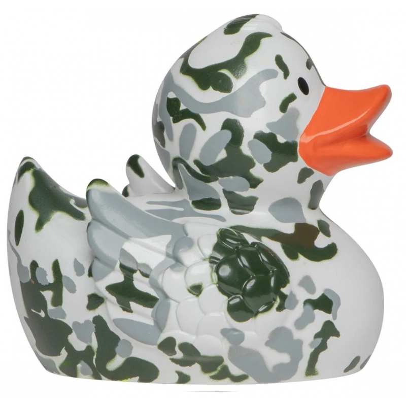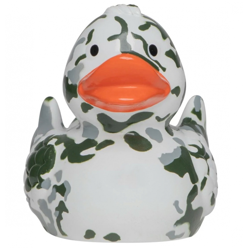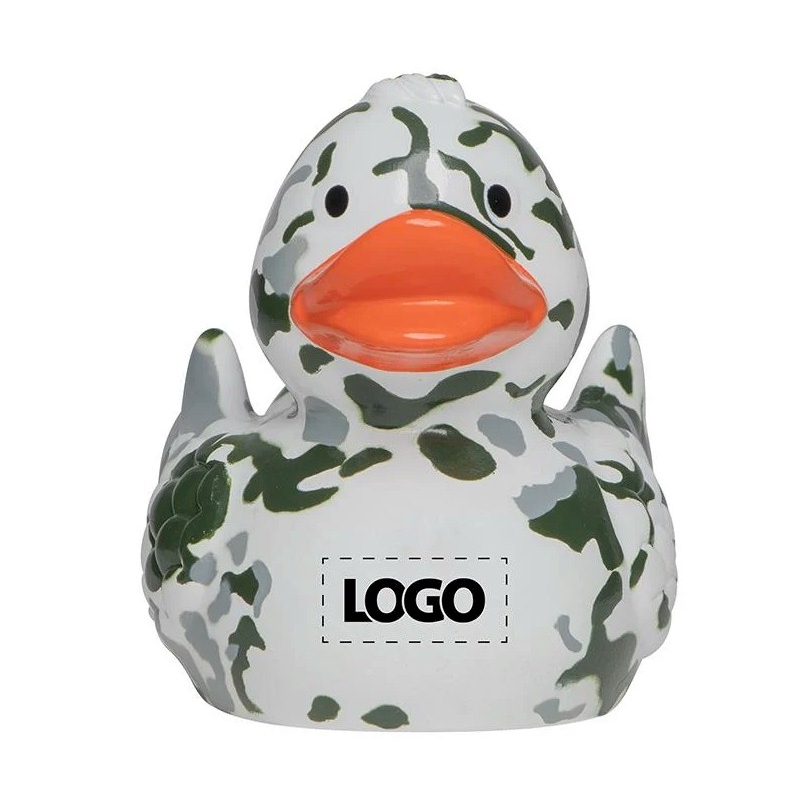 This camouflage rubber duck is also ideal for customization. Perfect for printing a logo or text for larger quantities, or for personalizing a single duck with a sticker. See the Customization category or check Printing.