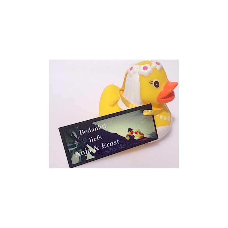 Put this bride rubber duck along with the groom on the wedding cake or use it as a decoration at a wedding. Also great to give to the newlyweds. Check out Personalization and printing to personalize your ducks.
