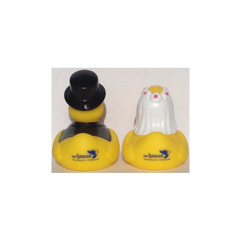 Great wedding thank you gift. Check out Personalization and printing to personalize your ducks. Also great to give to the newlyweds or put this groom rubber duck along with the bride on the wedding cake.