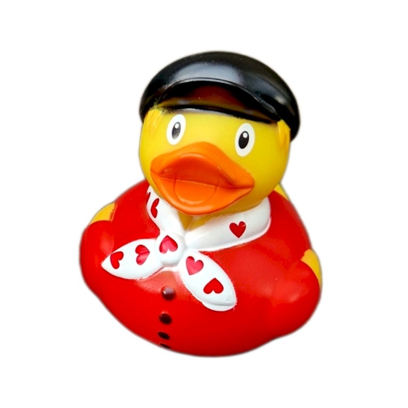 Say hello to this cheerful Dutch rubber duck dressed in classic traditional folk clothing! With his black cap, bright red outfit and heart-patterned scarf, he looks ready to dance his way straight into your bathroom. And… he has a lovely female counterpart named Klassien.