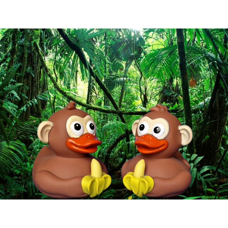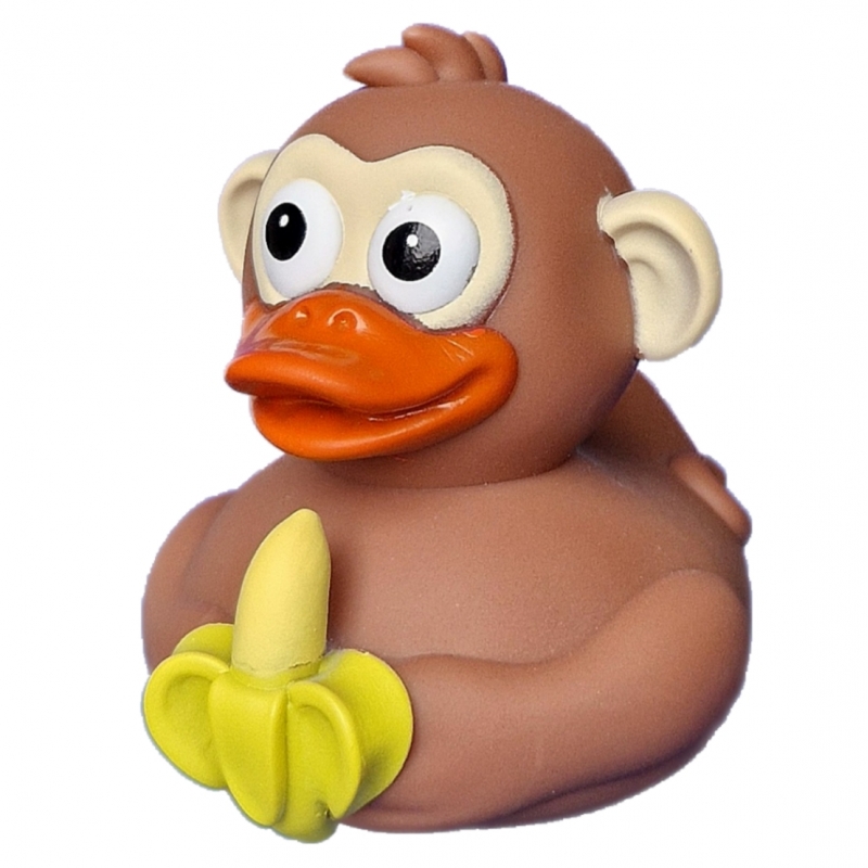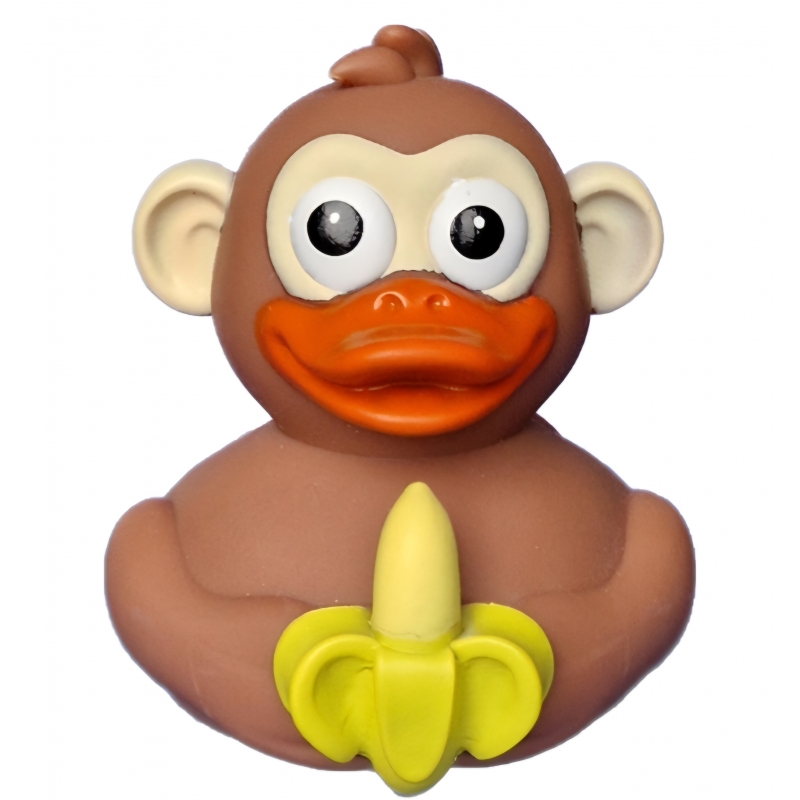 Deze grappige aap badeend combineert twee werelden: het vrolijke van een badeend en het speelse karakter van een aap. Met een banaan stevig in zijn handen is hij klaar voor een tropisch avontuur in bad.