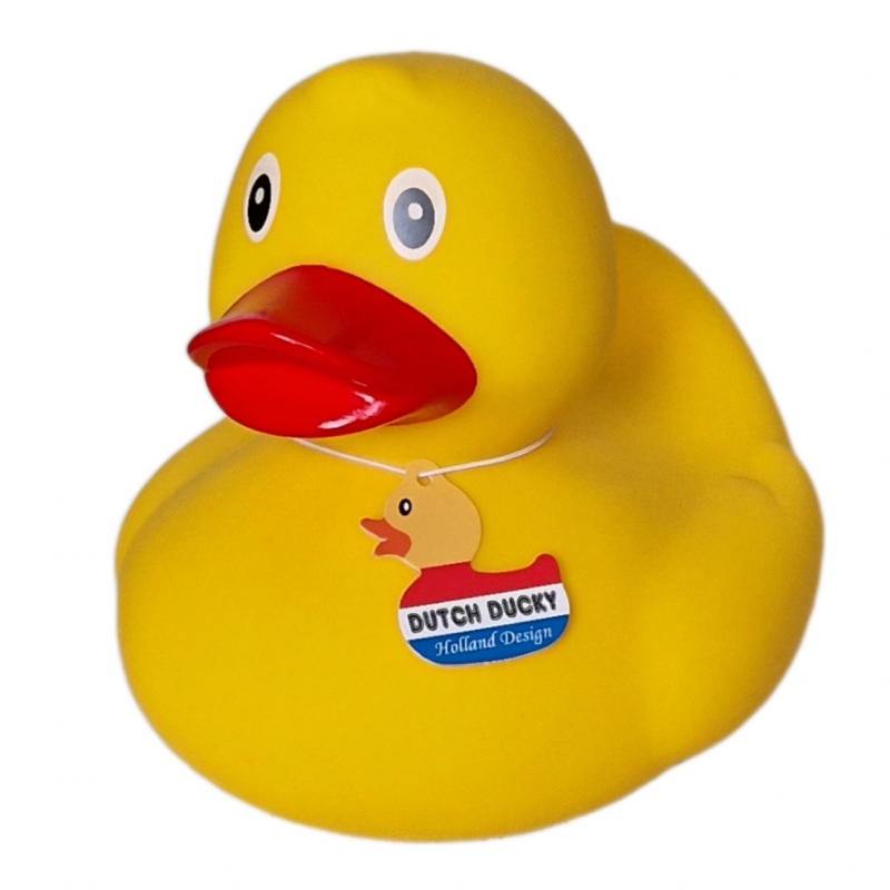 Een leuke witte XL-badeend die 15 cm hoog is, simpel, vrolijk en een echte blikvanger in bad of op de plank.