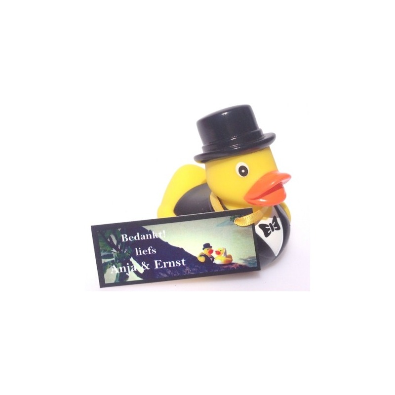 We kunnen dit eendje ook bedrukken en dus persoonlijk maken. Bedrukken te duur: kies voor een label of sticker zie categorie PERSONALISEREN.
