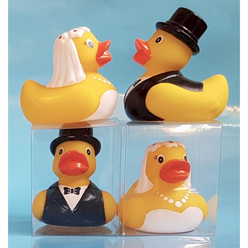 Zet deze bruidegom badeend op de bruidstaart of gebruik hem als decoratie op een bruiloft. Maar dit bruidegom eendje is ook een origineel bruiloft bedankje. De bruidegom is verpakt in een transparant doosje. Hoogte eendje ongeveer 6,5 cm.