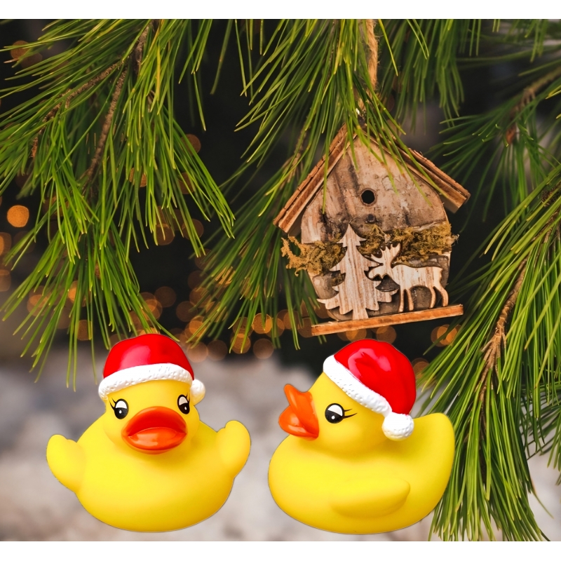 Deze leuke kerst eend mini is ongeveer 5,5 cm hoog.