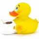 De lanco eenden zijn gemaakt van natuurlijk rubber van hoge kwaliteit, die wordt verkregen uit het melk van de rubberboom (Hevea brasiliensis). De rubber is van nature zacht, flexibel, waterdicht en is makkelijk te reinigen. Er zijn dus geen weekmakers enz nodig. Ze zijn 100% vrij van PVC, nitrosamines en Ftalaten. Het is dus geen enkel probleem als kinderen er op kauwen. H 8 cm.