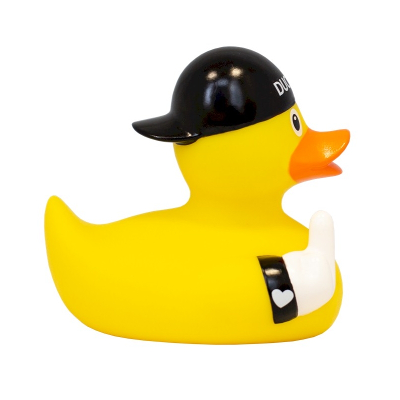 Lilalu Badeend. Hoogte ongeveer 8,5 cm.