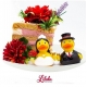 Zet deze bruidegom badeend van Lilalu samen met de bruid badeend op de bruidstaart of gebruik hem als decoratie op een bruiloft. Maar dit bruidegom eendje is ook een origineel bruiloft bedankje. Natuurlijk ook leuk om te geven aan het kersverse bruidspaar.
