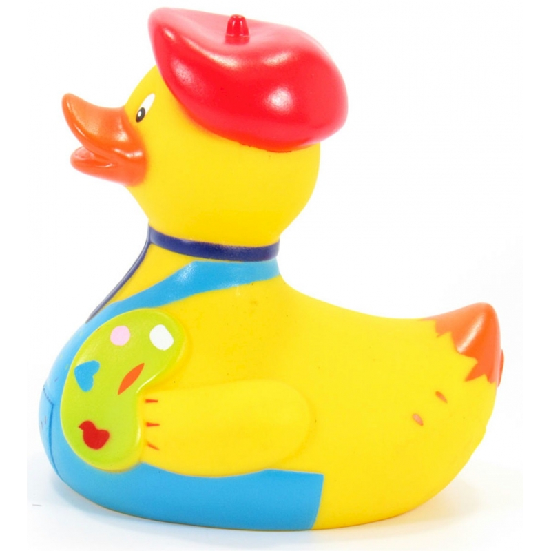 Deze mooie badeend heeft een luxe uitstraling en is 11 cm hoog. Van deze Schilder/Kunstenaar badeend hebben we ook een lippenbalsem, voor de lippenbalsem KLIK HIER.