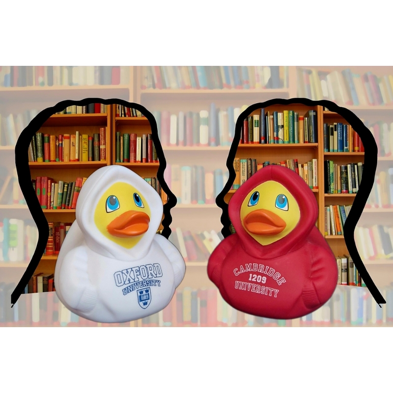 Deze universiteit badeend van Oxford is 9.5 cm hoog.