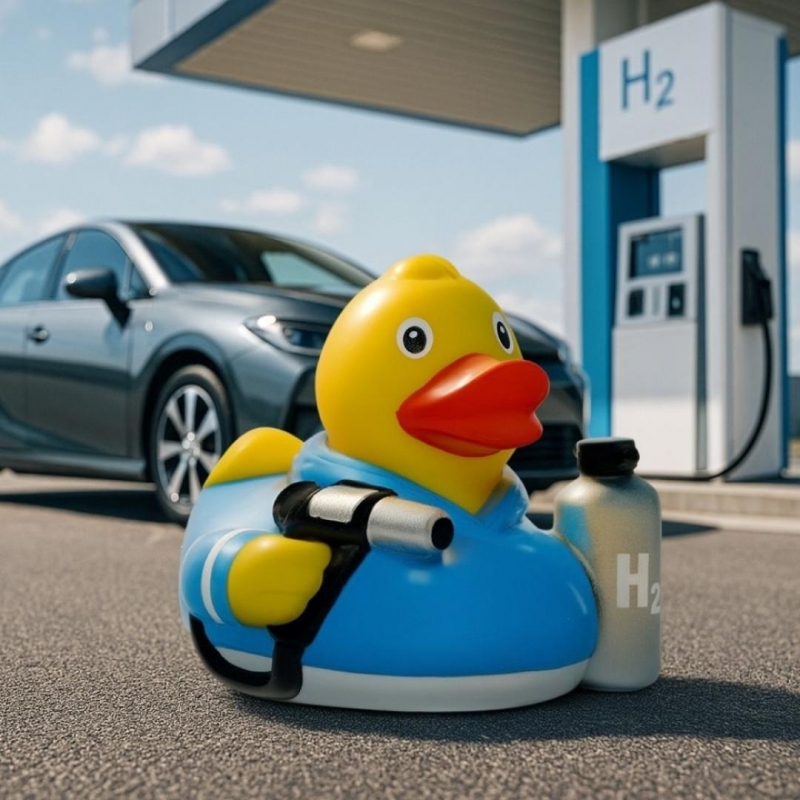 Waterstof badeend, een symbool voor innovatie, mobiliteit en hernieuwbare energieën.
