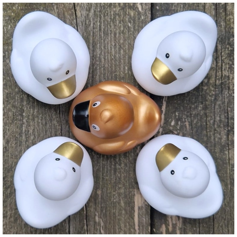 Deze mooie gouden badeend is 8 cm hoog. Ook super met bedrukking. Klik HIER voor de 5 cm hoge versie.