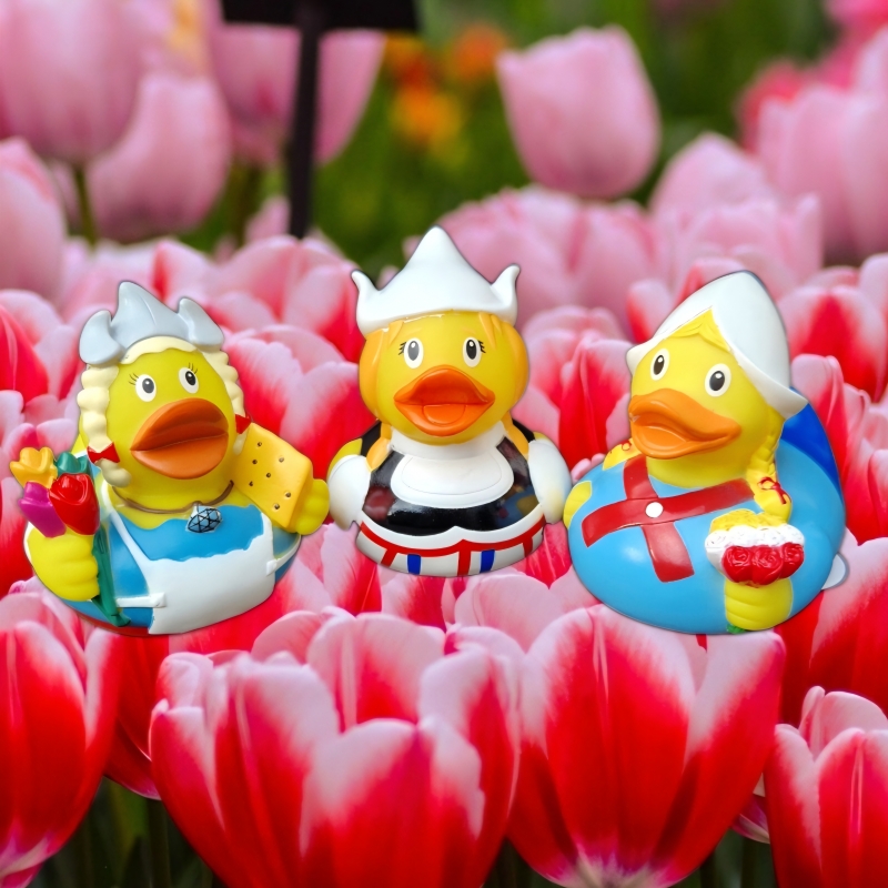 Deze vrolijke Nederlandse badeend steelt gegarandeerd de show met haar schitterende Hollandse klederdracht! Met haar schattige witte kapje en bonte rok zwemt ze zo je badkamer binnen alsof ze net van een kaasmarkt komt. En psst… ze komt niet alleen! Er is ook een stoere mannelijke versie genaamd Hendrik.